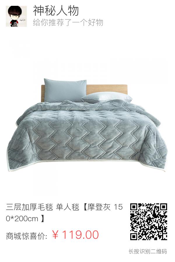 三层加厚毛毯 单人毯【摩登灰 150*200cm 】