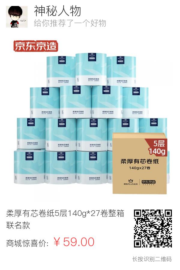柔厚有芯卷纸5层140g*27卷整箱 联名款