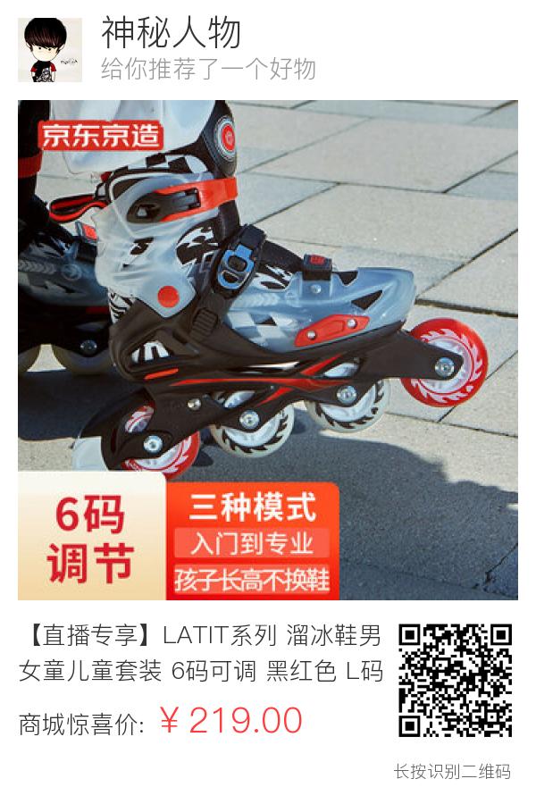 【直播专享】LATIT系列 溜冰鞋男女童儿童套装 6码可调 黑红色 L码