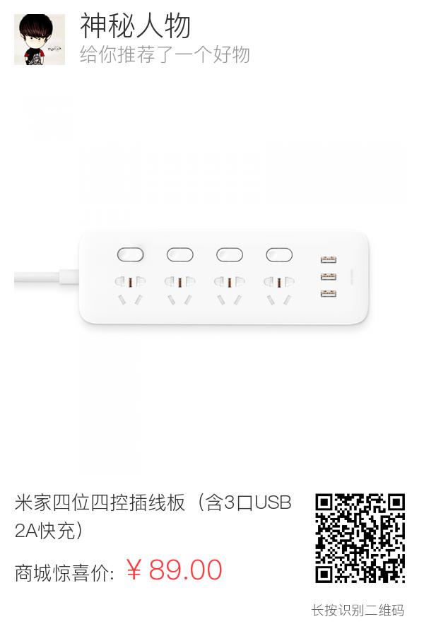 米家四位四控插线板(含3口USB 2A快充)