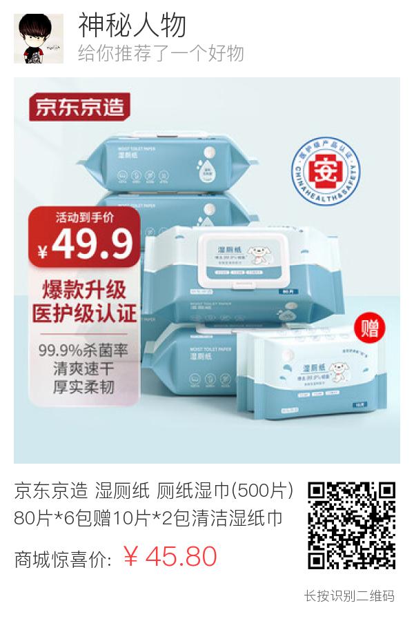 京东京造 湿厕纸 厕纸湿巾(500片)80片*6包赠10片*2包清洁湿纸巾湿巾